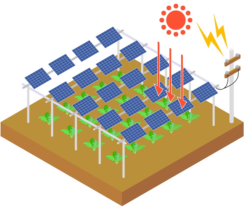 様々な決まりごとはありますが、簡単に言うと太陽光発電設備の下で農業して、